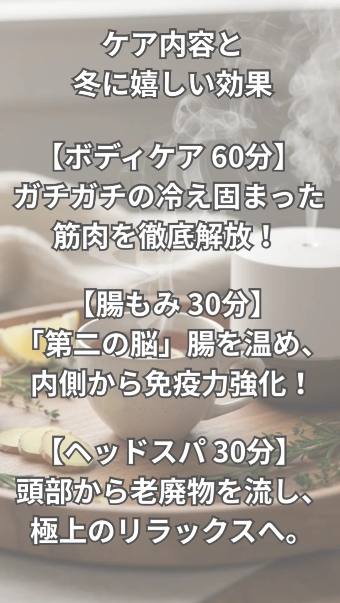 冬に負けない身体へ!免疫力強化・超豪華120分ケア