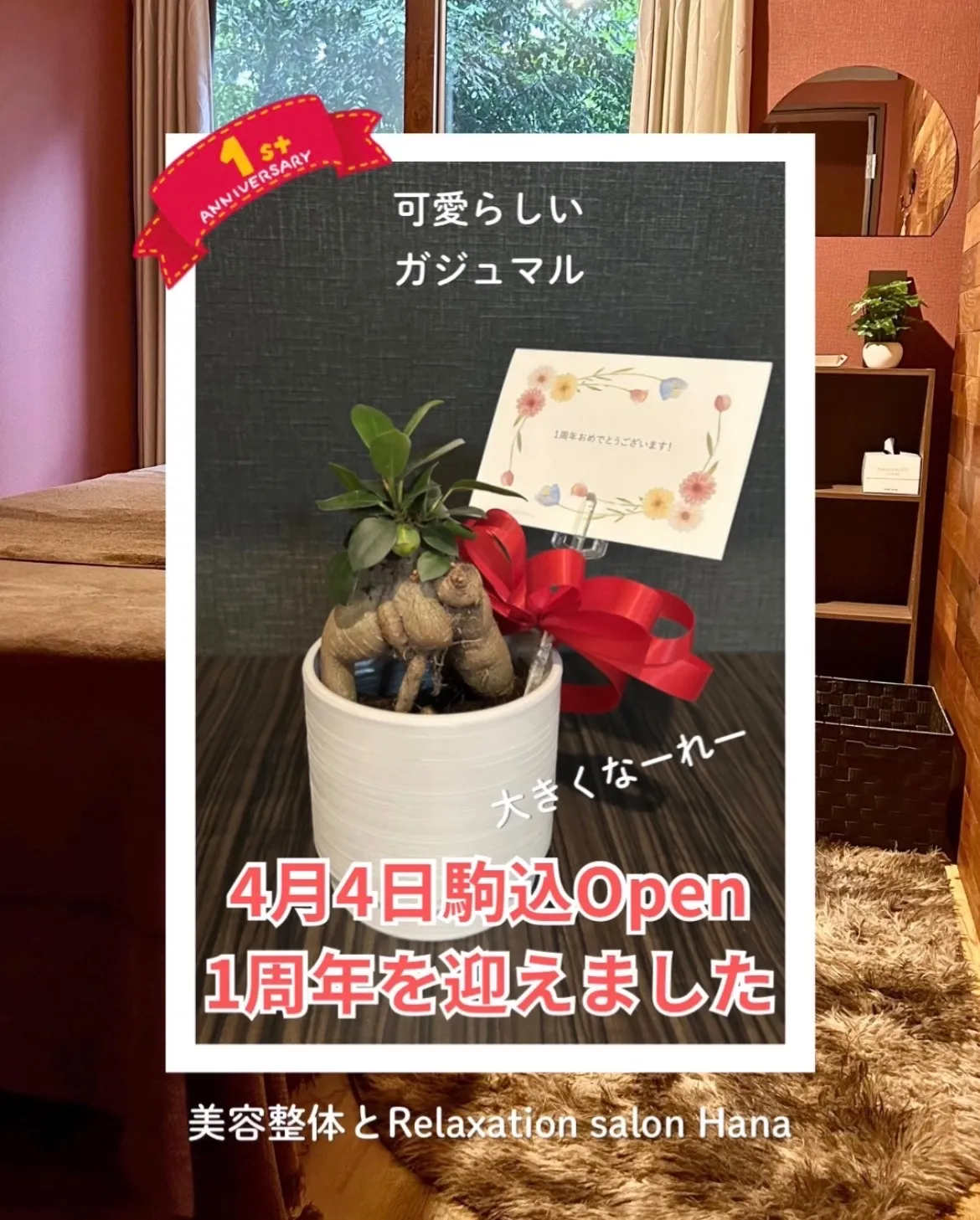「美容整体とRelaxation salon Hana」は、先日4月4日で駒込にオープンして無事1周年を迎えることができました!