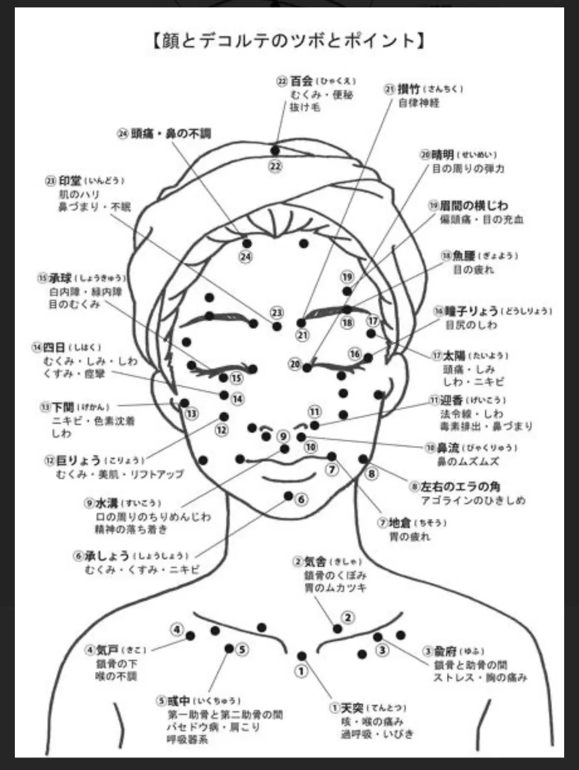 そんなお悩みはありませんか? 実は、私たちの顔やデコルテには、美容と健康に効果的な「ツボ(経穴)」が集中しています。